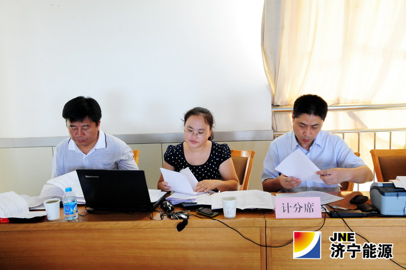 由市国资委外派监事和济宁能源发展集团政治部组成的计分小组计分现场